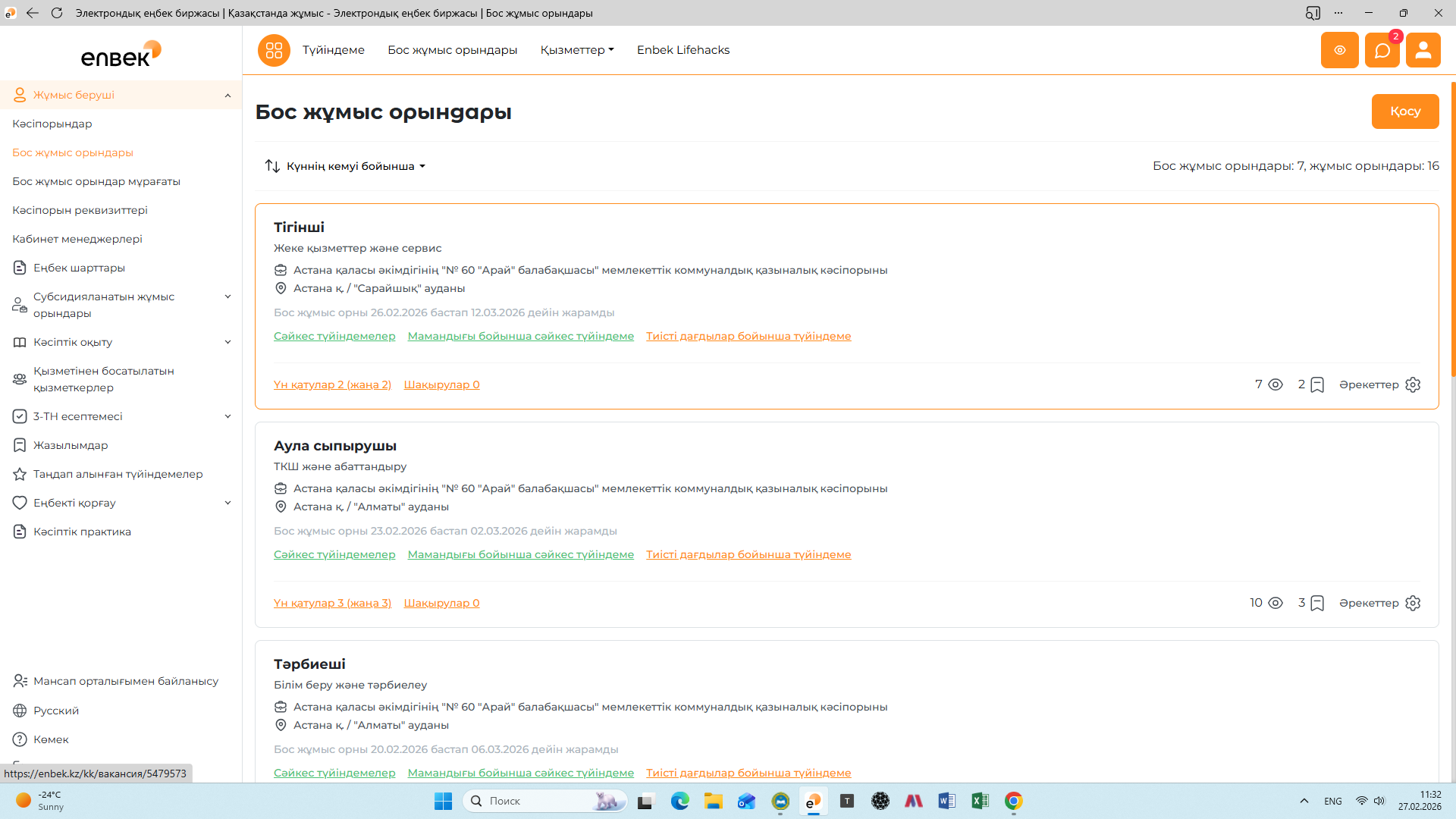 Бос орындар